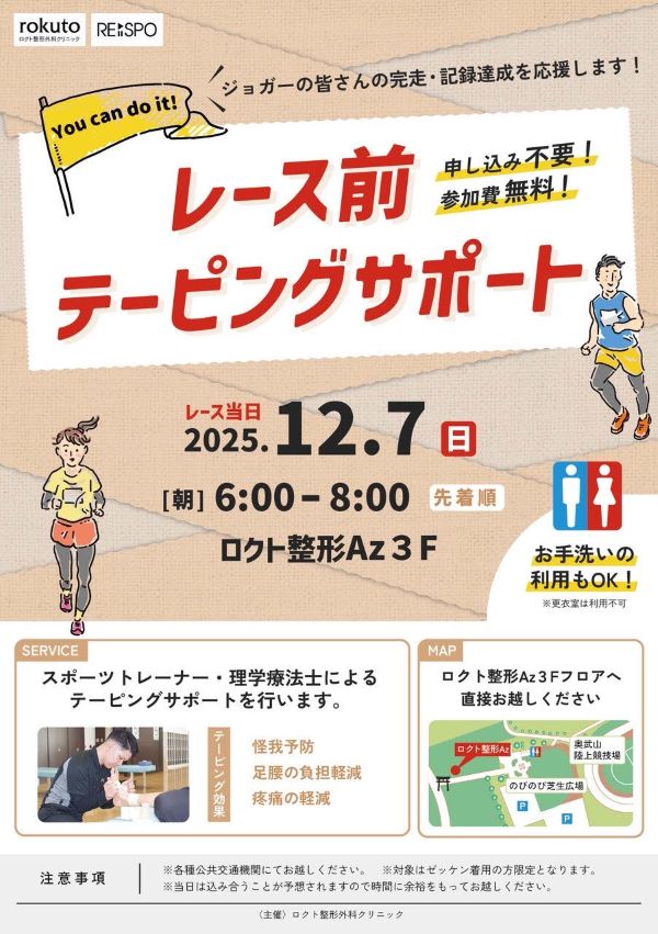 前回は、専門学生の方に無料でテーピングサポートしていただいたのですが、